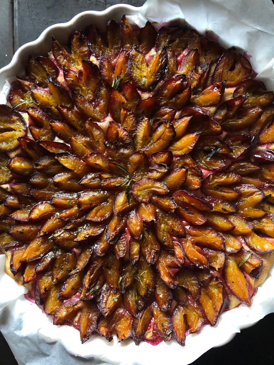 Zweckentfremdung bzw. Uminterpretation auch hier: mein Lieblingsrezept „Schiacciata all’uva“ aus Katha Seisers Immerschonvegan mit Uhudlertrauben nun mit – Zwetschken! Einfach wie Zwetschkenfleck gemacht reicht die Masse gleich für 2 Kuchen. Und den Nachbarn hats auch gefallen. Ihnen verdanke ich die Anregung, es statt mit Rosmarinzucker nun mit Estragonzucker zu probieren. Wie bereits erwähnt, isst man in Slowenien gerne Süsses mit Estragon. Keine schlechte Idee und schmeckt einfach köstlich.