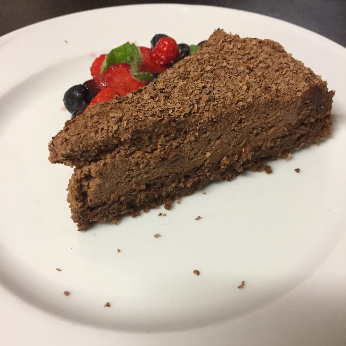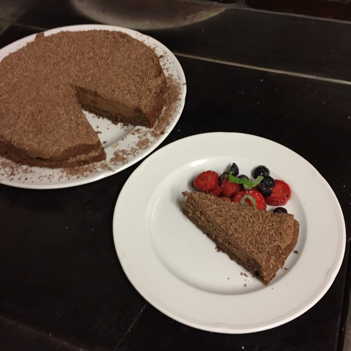 Jedenfalls ist nun diese Fraknoi-Torte vergleichsweise einfach zu backen, und auch dies ja nur zur Hälfte: man bereite eine Mousse au chocolat aus 6 Eiern und je 150 g geschmolzener dunkler Schokolade, Butter sowie Zucker, backe die Hälfte der Masse in einer runden Springform und streiche den Rest davon auf diese erkaltete „Ka-me(h)l-Torte“. Im Unterschied zur ähnlichen Susi-Torte allerdings ganz ohne Rum! Mit geriebener Bitterschokolade servieren.
