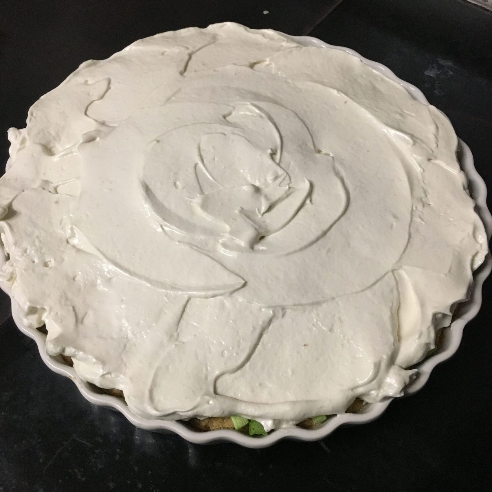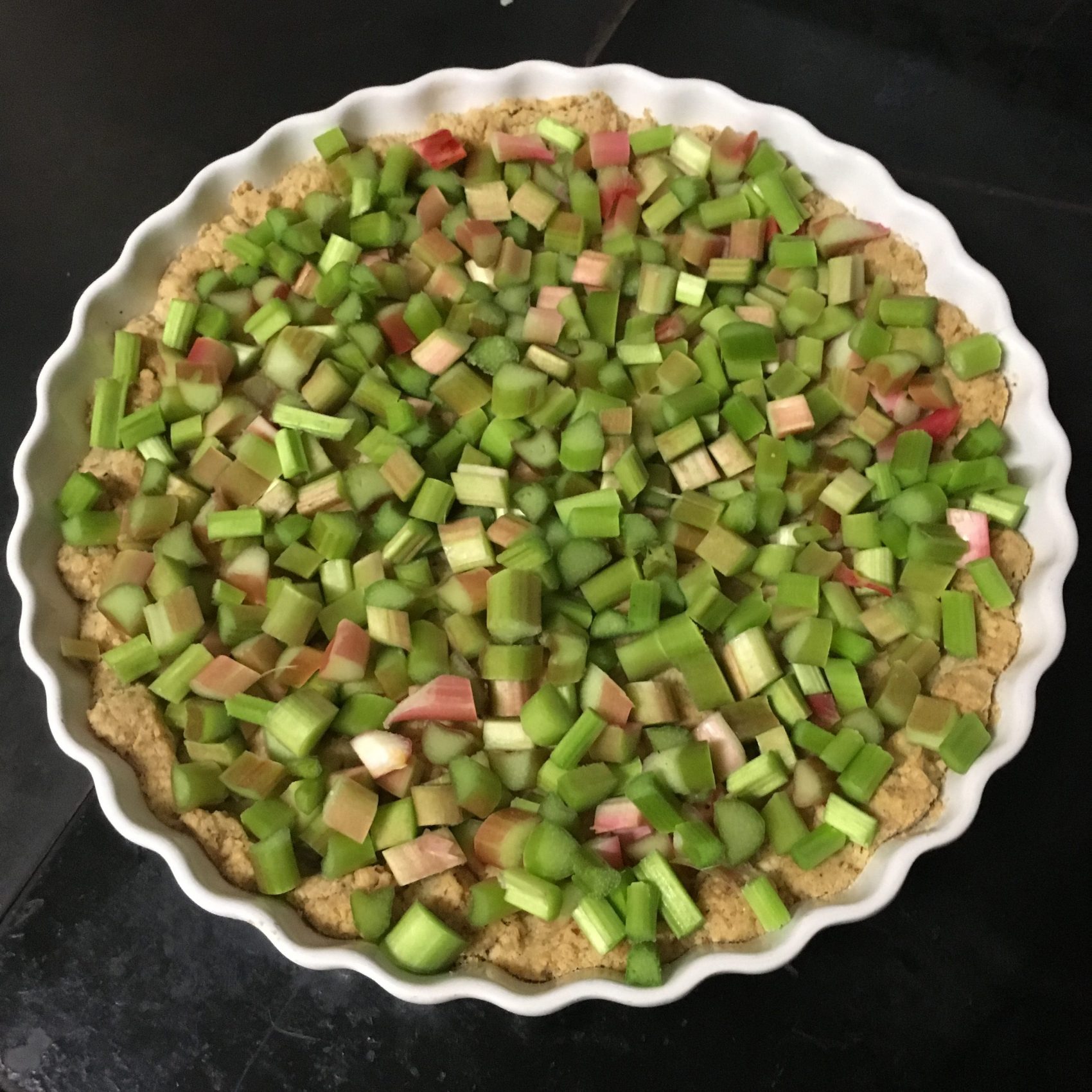 Mürbteig aus Mehl, Haselnüssen, Zucker und Butter in der Form kurz vorbacken, noch heiss mit Ribiseln (oder Rhabarber in kleine Stücke geschnitten) bedeckt bestreuen und den Schnee aus Eiweiss mit Zucker steif geschlagen darüber, bei 70 – 100° mehr trocknen als backen.