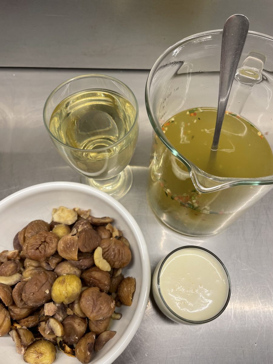 Esskastanien wachsen hier reichlich in der Umgebung, also werden sie auch gern verk0cht. Zum Beispiel als Suppe.