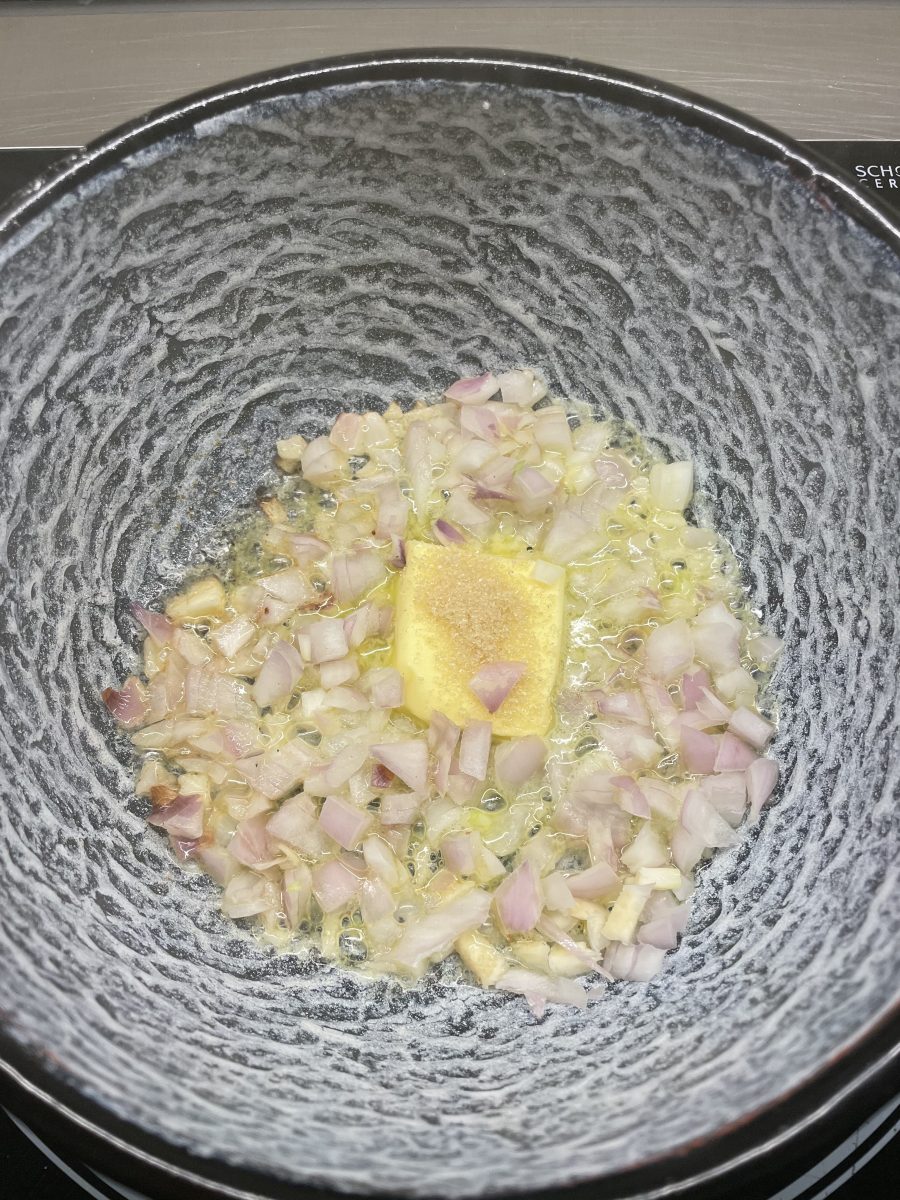 Fein gewürfelte Schalotten in etwas Butter mit Zucker karamellisieren. Geschälte gekochte Mar0ni dazu und durchrösten. Mit etwa einem Achtel trockenen Weisswein ablöschen, mit Suppe aufgiessen und weich köcheln. Danach mit dem Pürierstab mixen, Sauerrahm unterrühren, mit Salz und Pfeffer würzen. Schliesslich mit ein Paar Tropfen Trüffelöl und etwas gehacken Kräutern servieren.