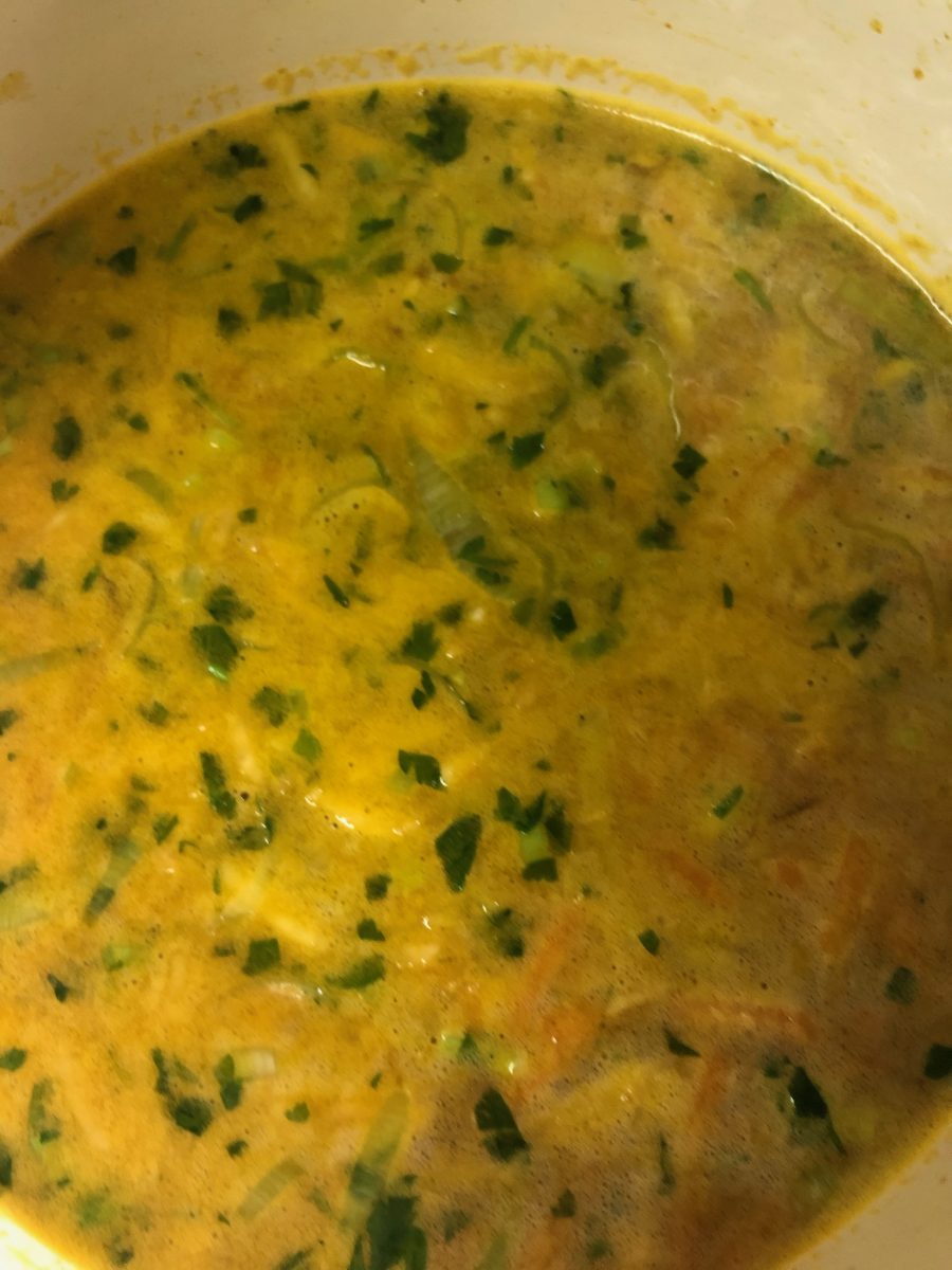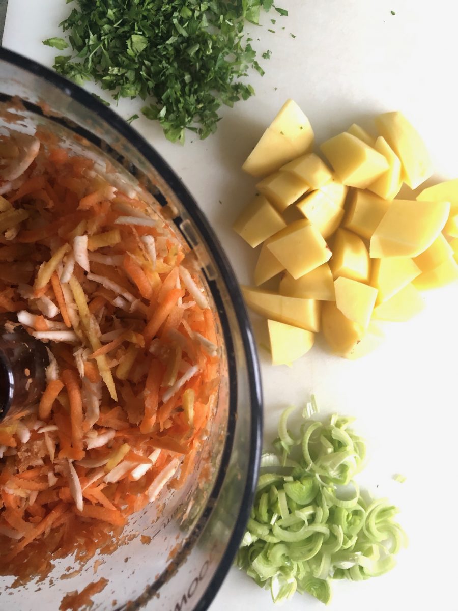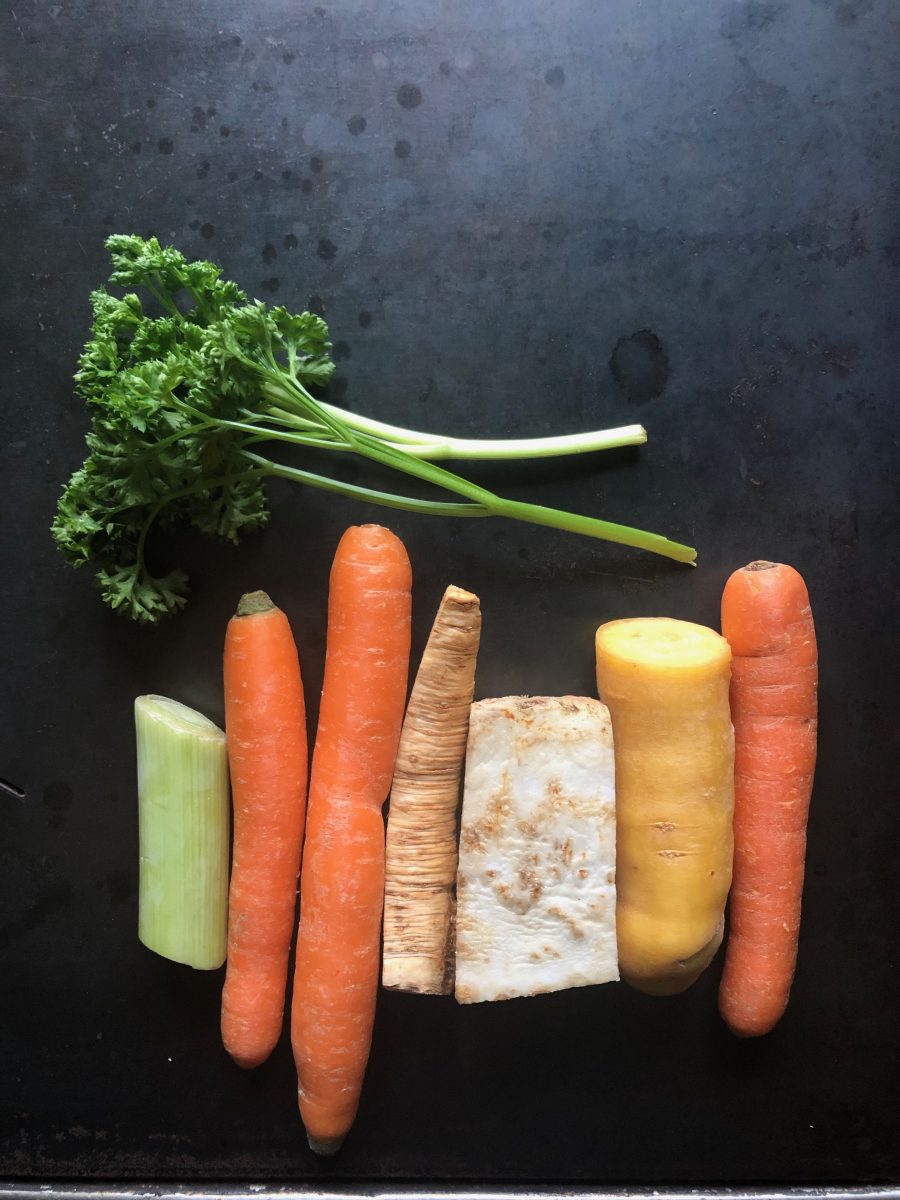 Die Wurzeln: Karotten, Gelbe Rübe, Petersilienwurzel, Sellerie raffeln, den Lauch halbiert in feine Streifen geschnitten. In Butter anrösten, gehackte Petersilie dazu und mit Wasser aufgiessen. Für die Luxusvariante noch in Würfel geschnittene Erdäpfel oder feinblättrig geschnittene Champignons dazu. Salzen, pfeffern, fertig. Vegane ersetzen die Butter durch Öl. Sehr einfach, sehr beliebt und sehr schmackhaft!