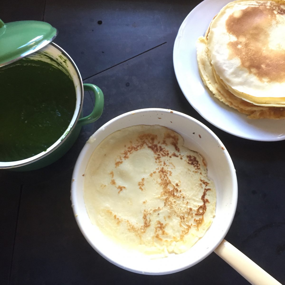 Für die geliebten Spinatpalatschinken brauchts wirklich kein Rezept, nur passierten Spinat, aber ja keinen Knoblauch oder Käse dabei, halt die Kinderlieblingsspeise.