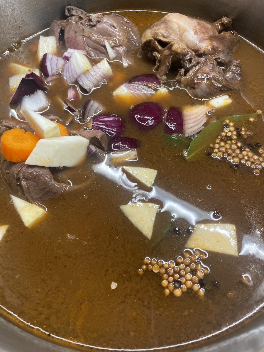 2 ganze Herzen von den groben Häuten und Gefäßen befreit mit in Würfel geschnittenen Zwiebel,Karotten, Sellerie und gwürzt mit Pfeffer, Koriander und Lorber in Wildfond weich kochen. Herzen herausnehmen und in feine Streifen schneiden. Fond abseihen und beiseite stellen. Fein gewürfelte Zwiebel in Olivenöl anbraten, mit fein gehackte Kapern, Senf, Zitronenzesten ergänzt anrösten. Dann mit Zitronensaft löschen und mit dem Rehfond aufgiessen, einreduzieren lassen. Schliesslich Rahm und Obers drunter rühren, fein gestreifte Herzen hinein, nochmal heiss machen und mit slowenischen Mlinci oder Polenta servieren.